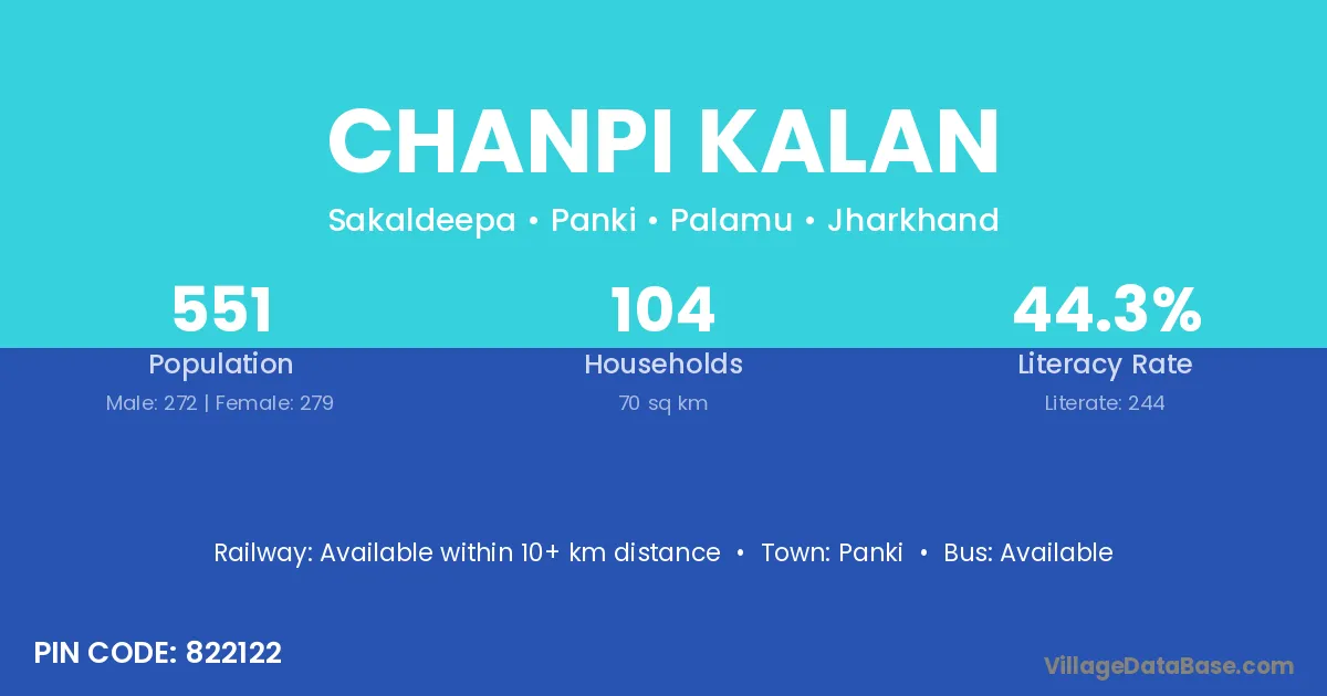 Panki is the nearest town to Chanpi Kalan village for major economic activities