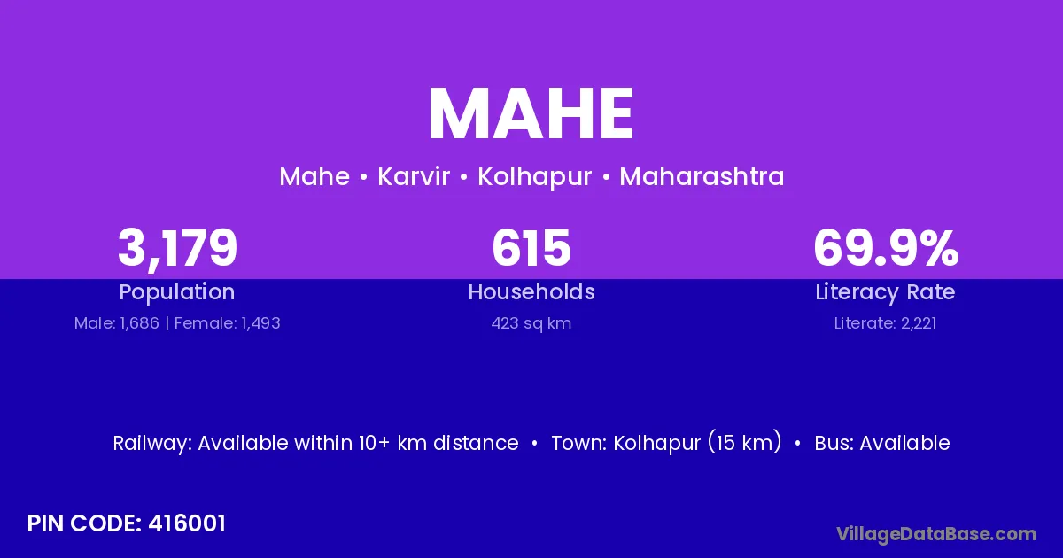 The literacy rate of Mahe village is 50.50%. Male literacy stands at 57.69% and female literacy at 42.86%.