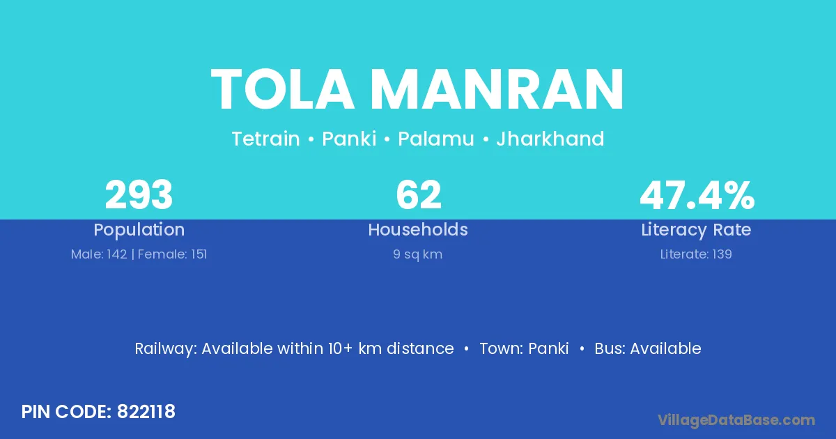 Panki is the nearest town to Tola Manran village for major economic activities