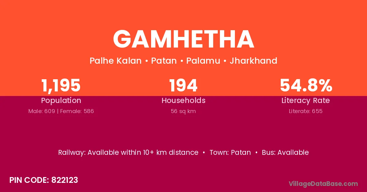 Gamhetha village has a total population of 1,195 people, of which 609 are males and 586 are females.