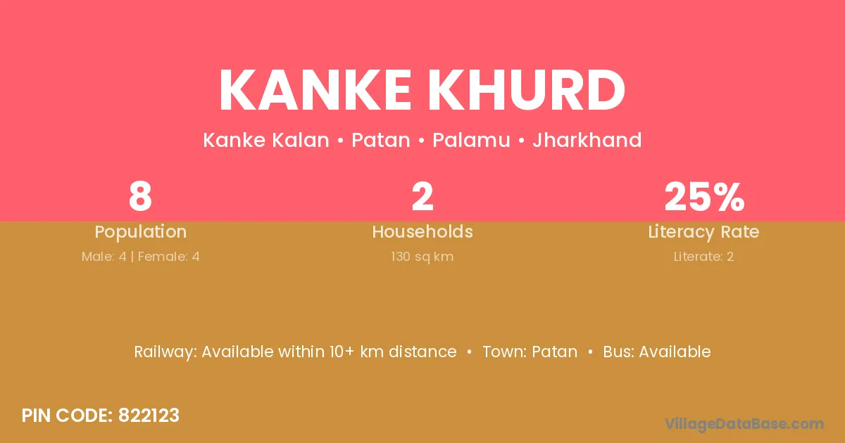 Kanke Khurd village has a total population of 8 people, of which 4 are males and 4 are females.