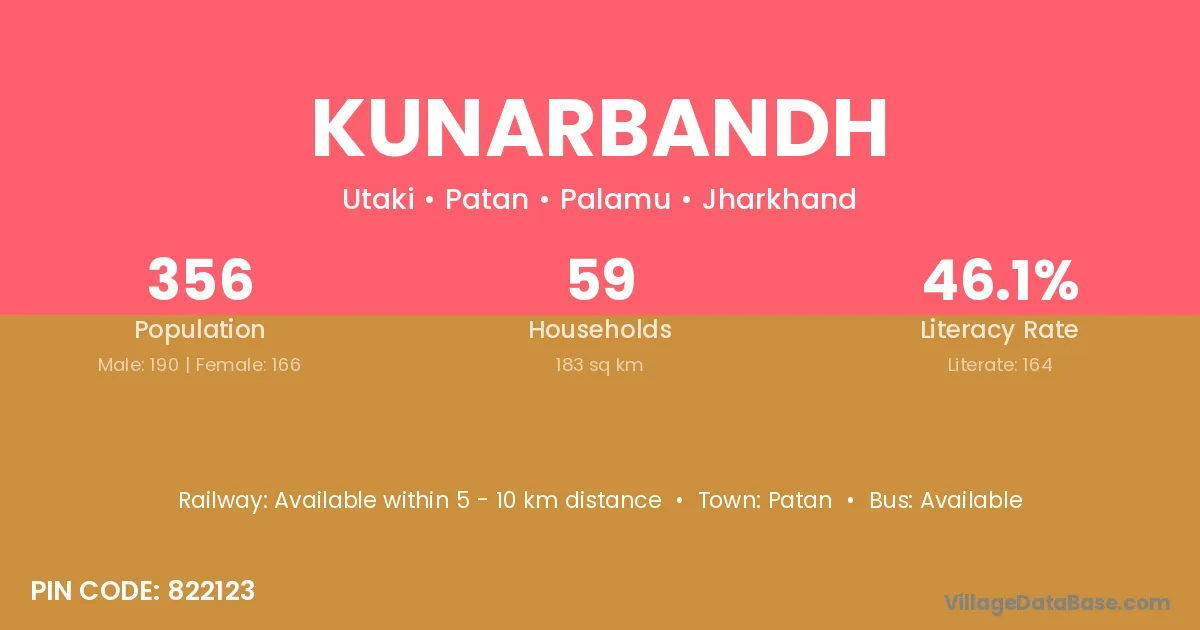 Kunarbandh village has a total population of 356 people, of which 190 are males and 166 are females.