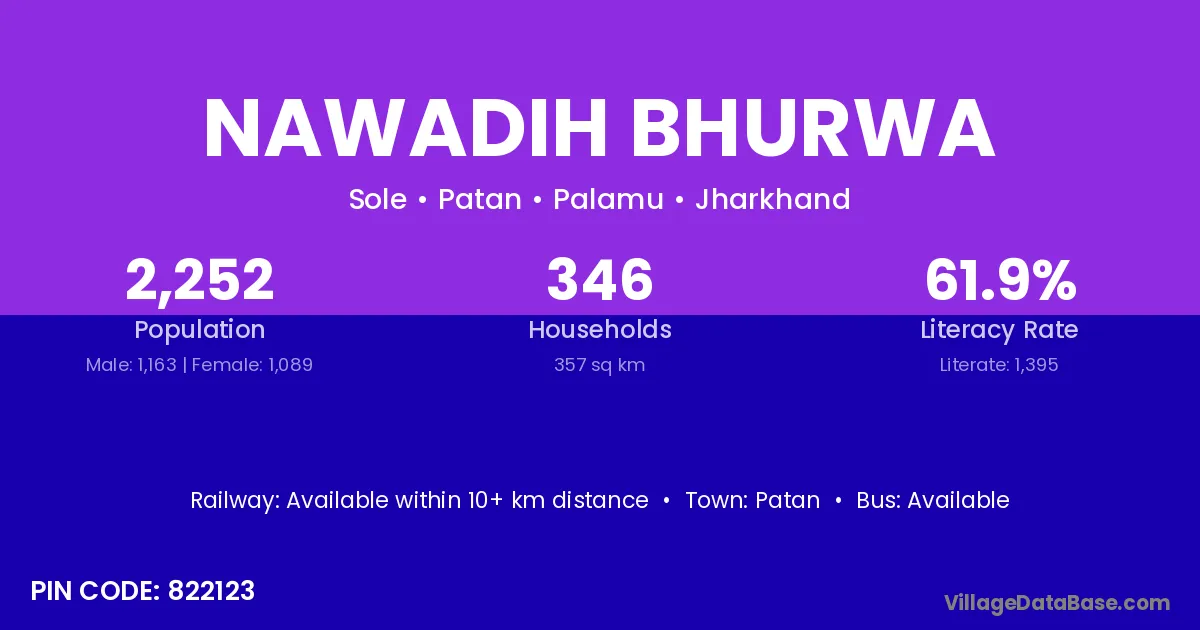 Nawadih Bhurwa village has a total population of 2,252 people, of which 1,163 are males and 1,089 are females.