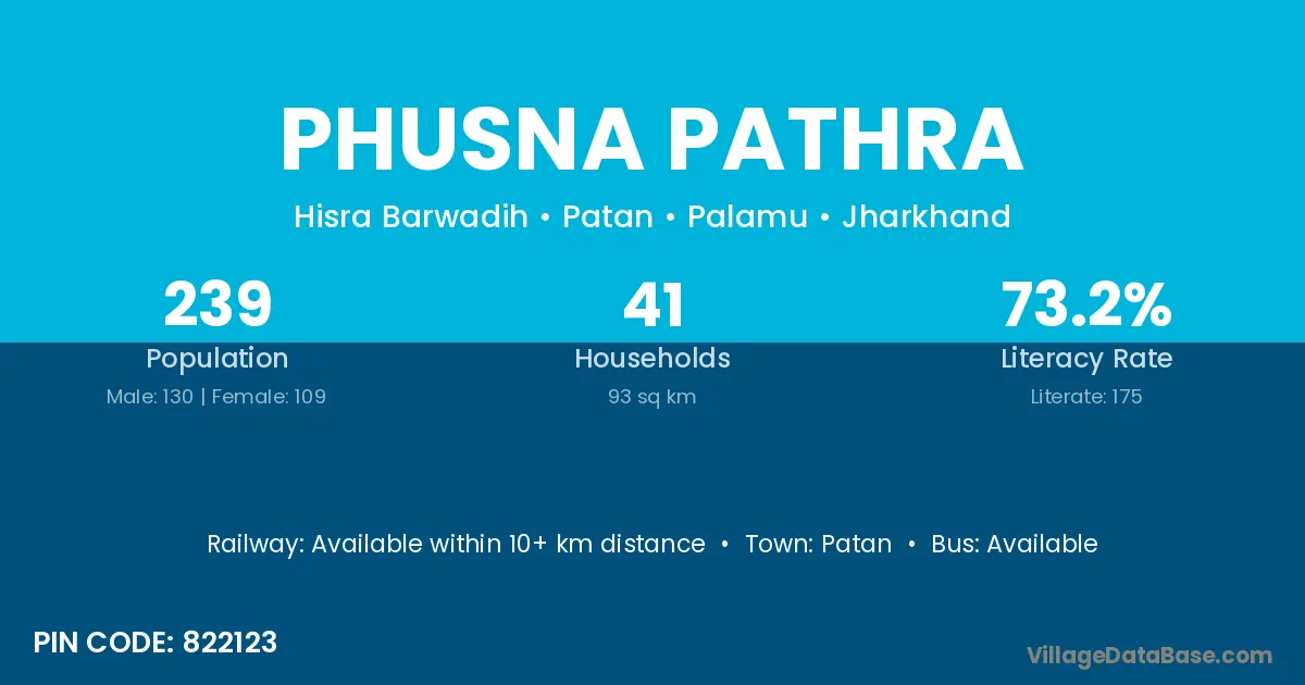 Phusna Pathra village is located in the Patan Subdivision of the Palamu district in Jharkhand .