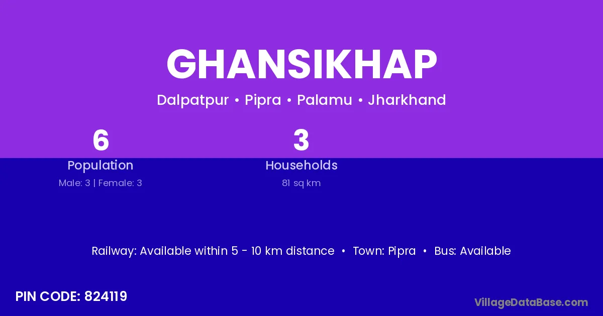 Ghansikhap village has a total population of 6 people, of which 3 are males and 3 are females.