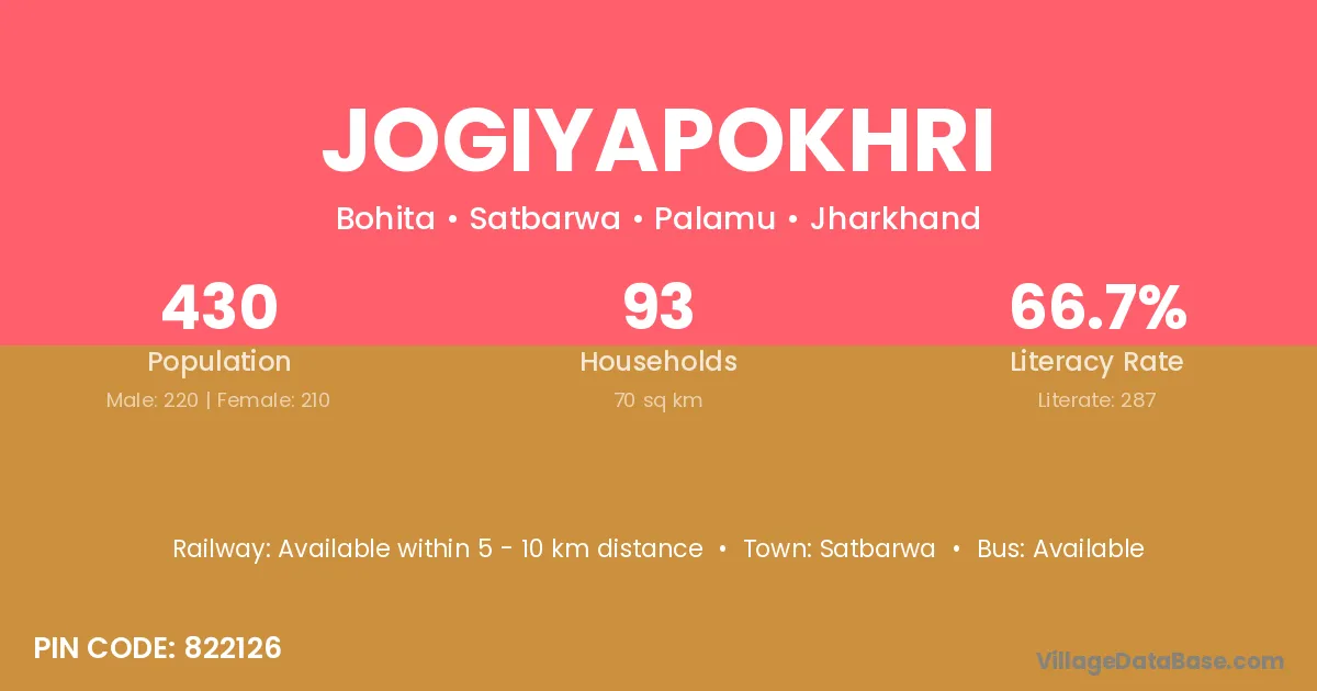 Jogiyapokhri village has a total population of 430 people, of which 220 are males and 210 are females.
