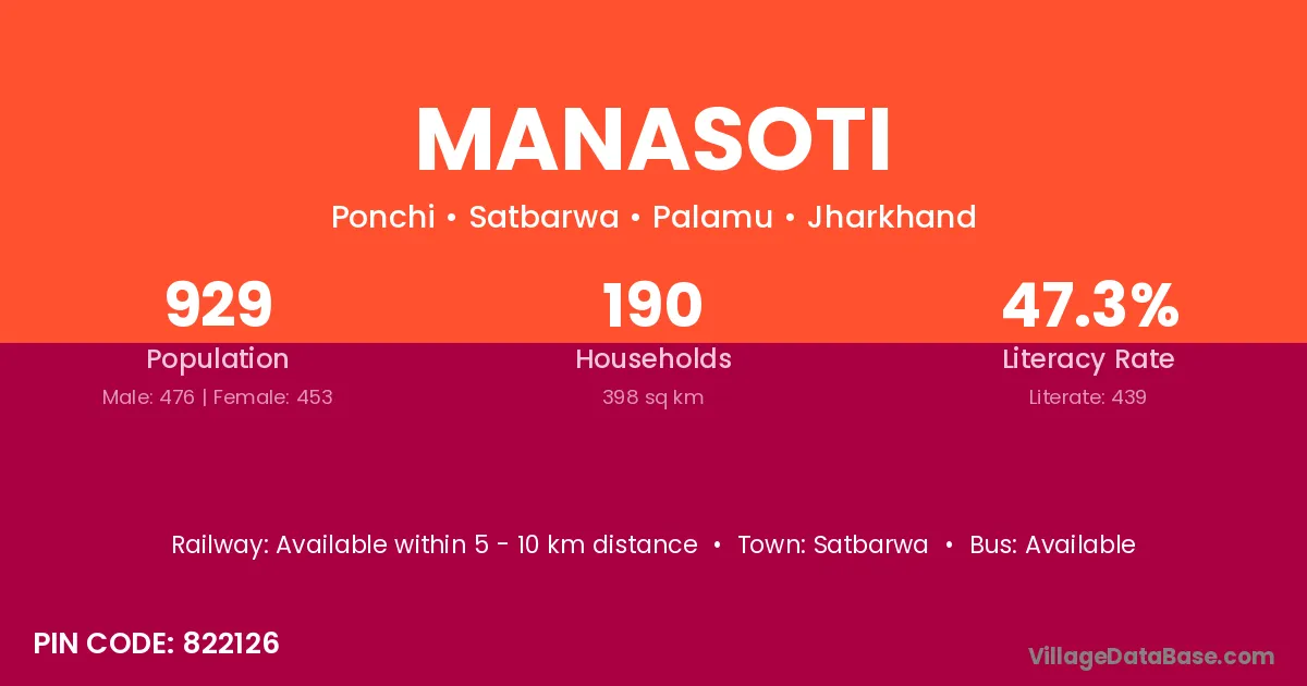 Satbarwa is the nearest town to Manasoti village for major economic activities
