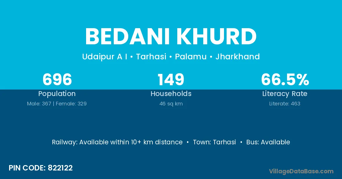 Bedani Khurd village is located in the Tarhasi Subdivision of the Palamu district in Jharkhand .