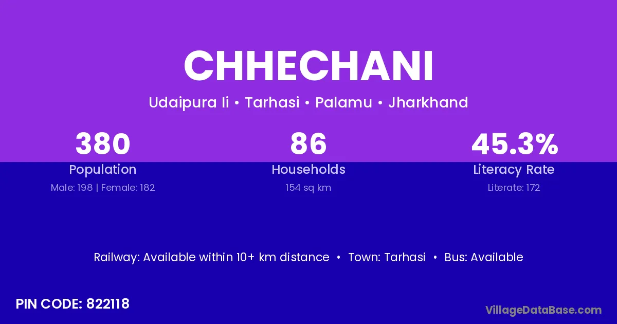 Chhechani village is located in the Tarhasi Subdivision of the Palamu district in Jharkhand .