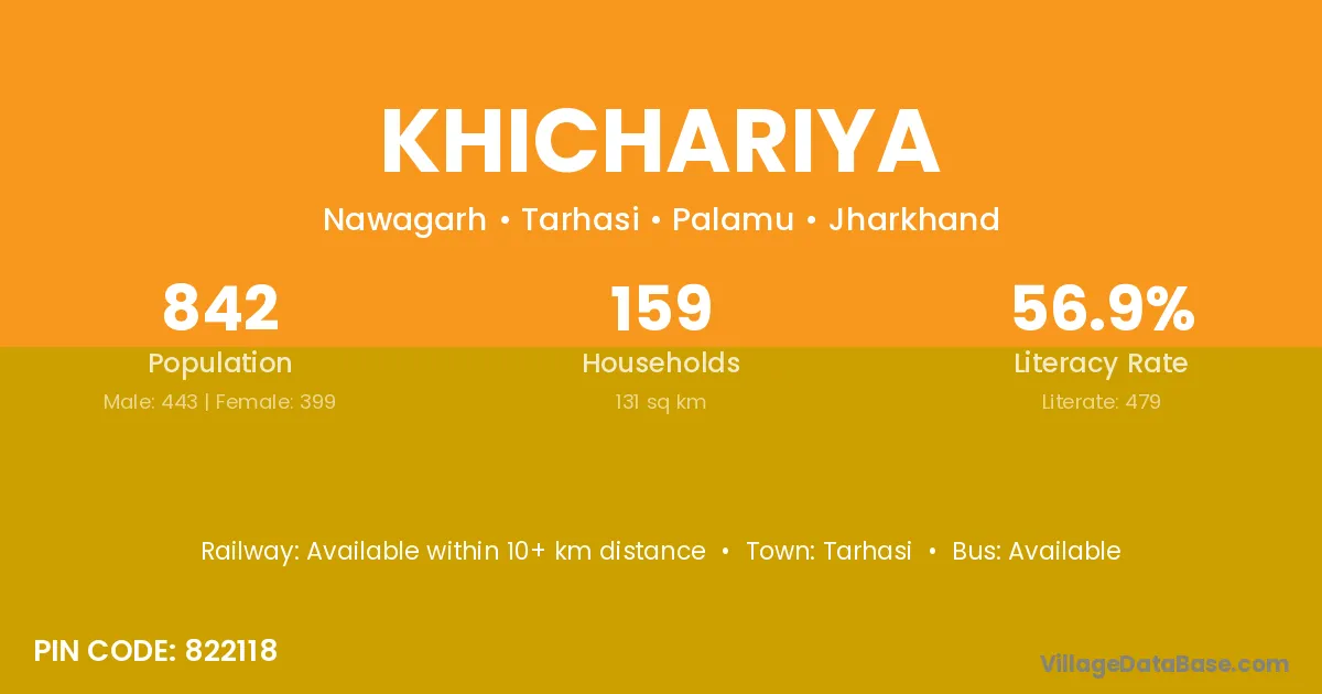 Khichariya village is located in the Tarhasi Subdivision of the Palamu district in Jharkhand .