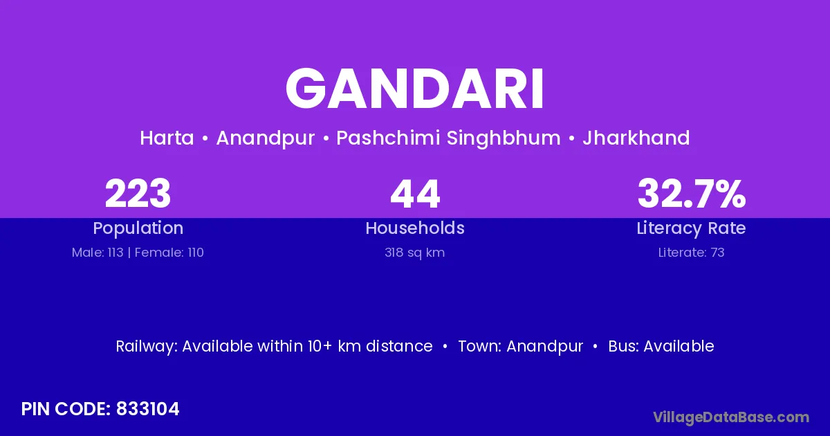 According to Census 2011 information, the village code of Gandari village is 833104.