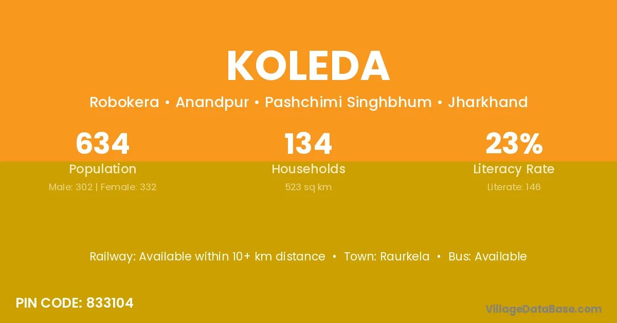 According to Census 2011 information, the village code of Koleda village is 833104.