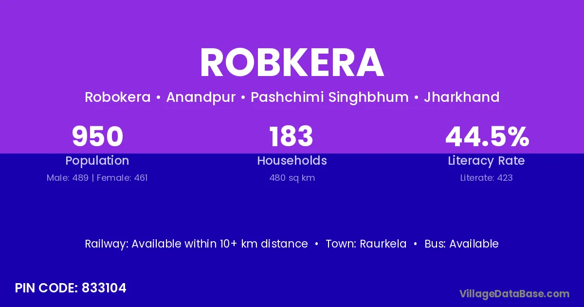 Robkera village has a total population of 950 people, of which 489 are males and 461 are females.