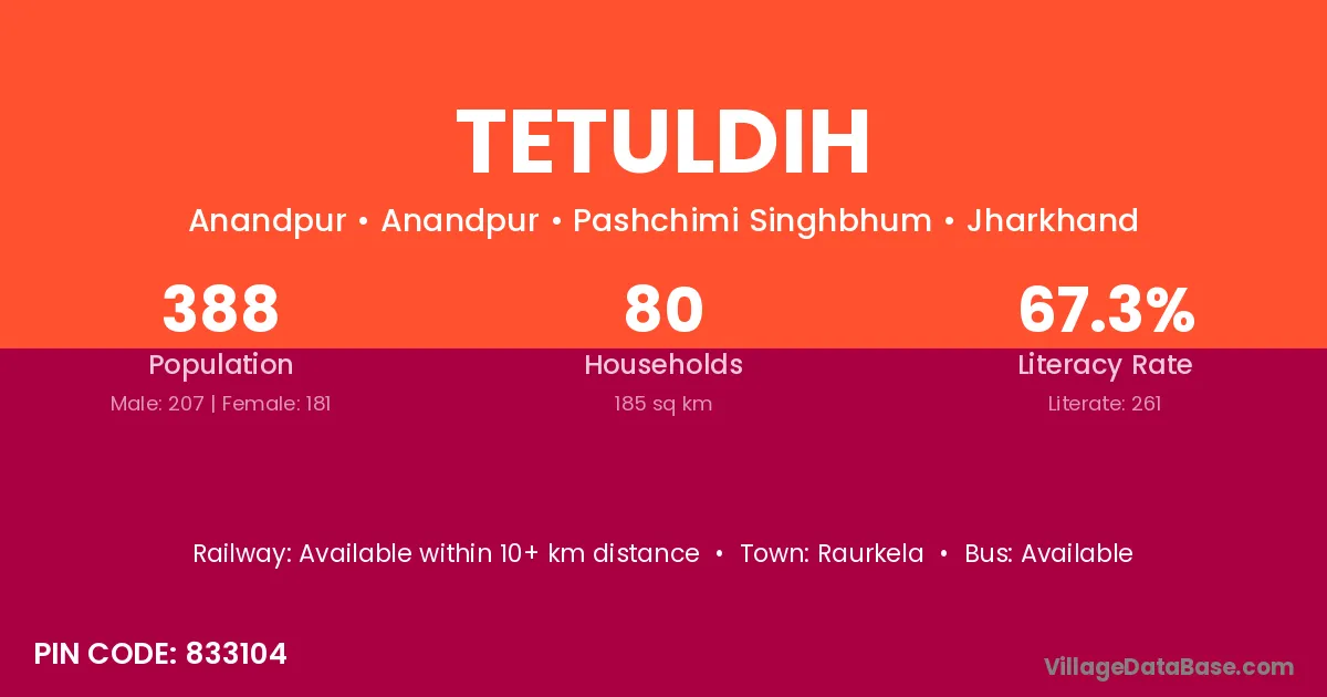 According to Census 2011 information, the village code of Tetuldih village is 833104.