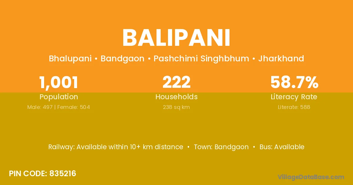 According to Census 2011 information, the village code of Balipani village is 835216.