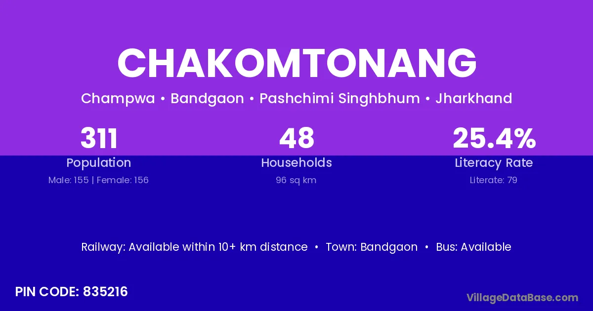 According to Census 2011 information, the village code of Chakomtonang village is 835216.