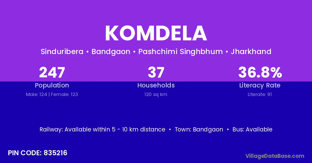 Komdela village has a total population of 247 people, of which 124 are males and 123 are females.