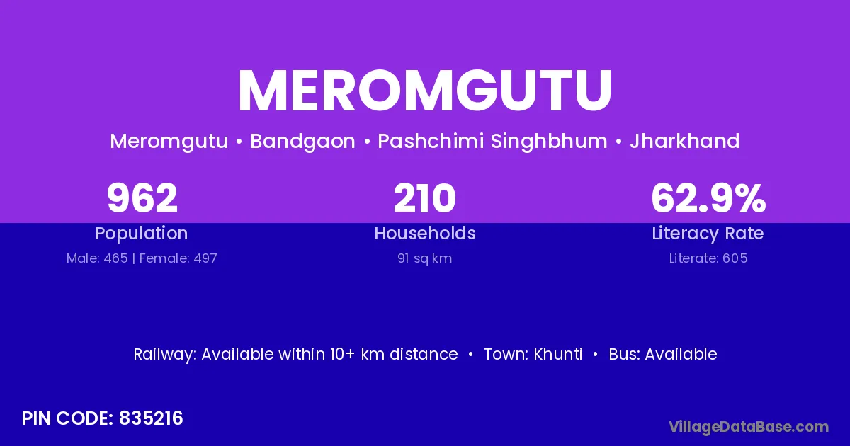 Khunti is the nearest town to Meromgutu village for major economic activities