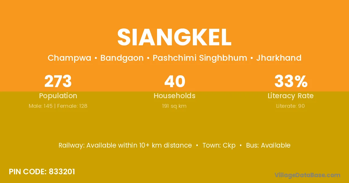According to Census 2011 information, the village code of Siangkel village is 833201.