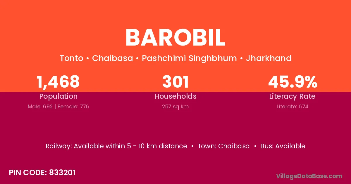 According to Census 2011 information, the village code of Barobil village is 833201.
