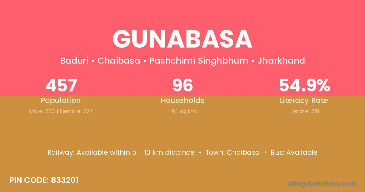 According to Census 2011 information, the village code of Gunabasa village is 833201.