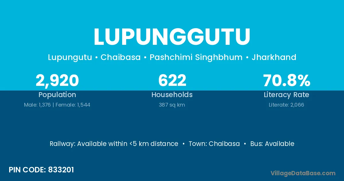 Chaibasa is the nearest town to Lupunggutu village for major economic activities