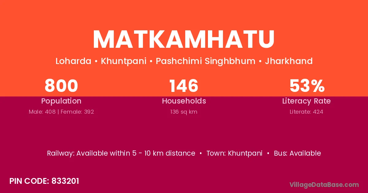 Chaibasa is the nearest town to Matkamhatu village for major economic activities