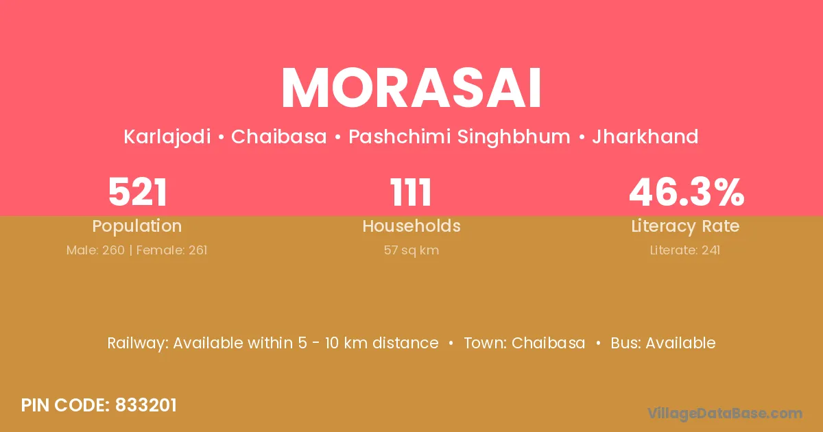Morasai village has a total population of 521 people, of which 260 are males and 261 are females.