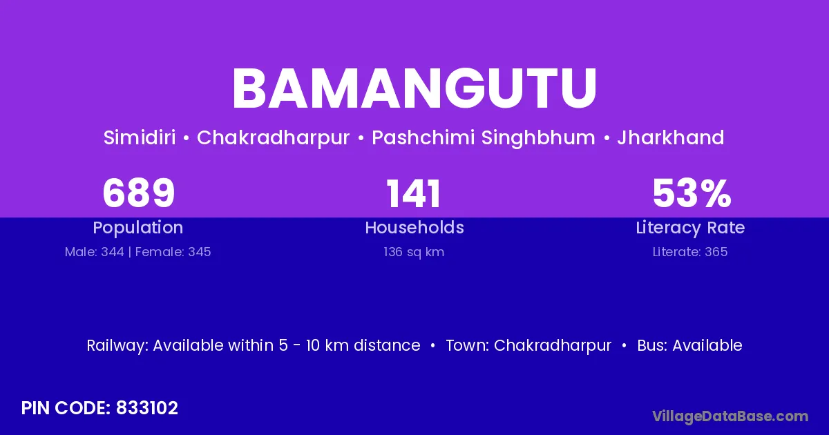Chakradharpur is the nearest town to Bamangutu village for major economic activities