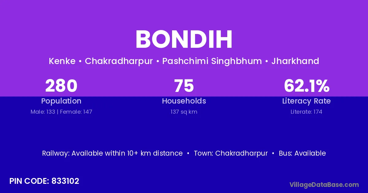 Chakradharpur is the nearest town to Bondih village for major economic activities