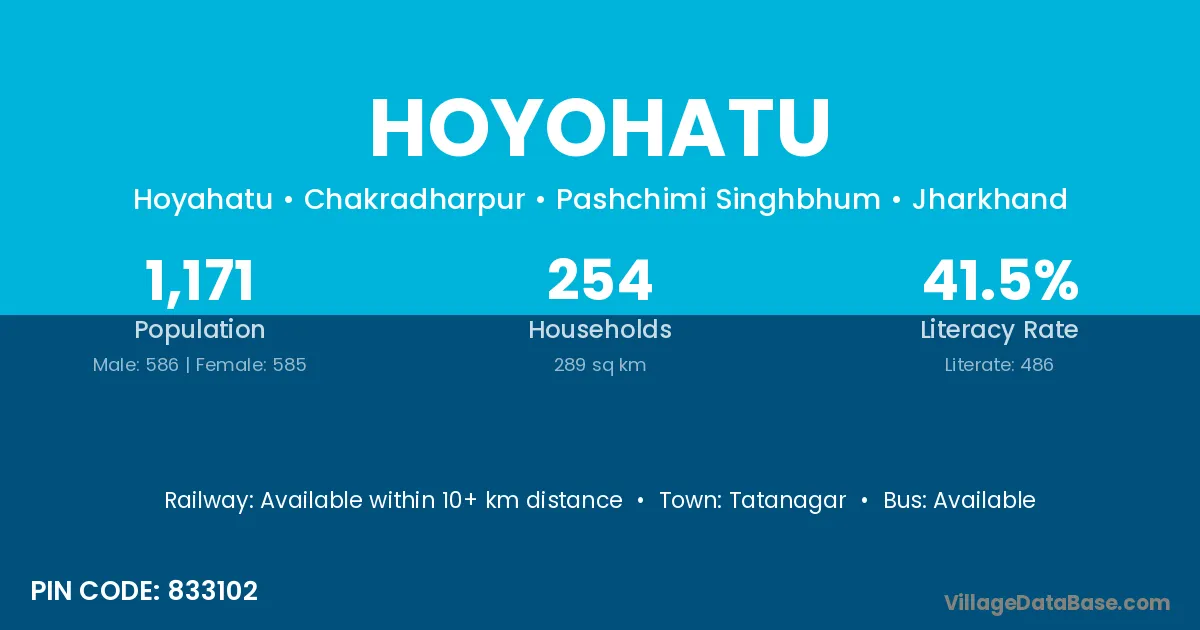 Tatanagar is the nearest town to Hoyohatu village for major economic activities
