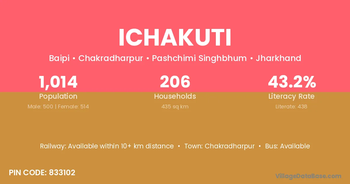 According to Census 2011 information, the village code of Ichakuti village is 833102.