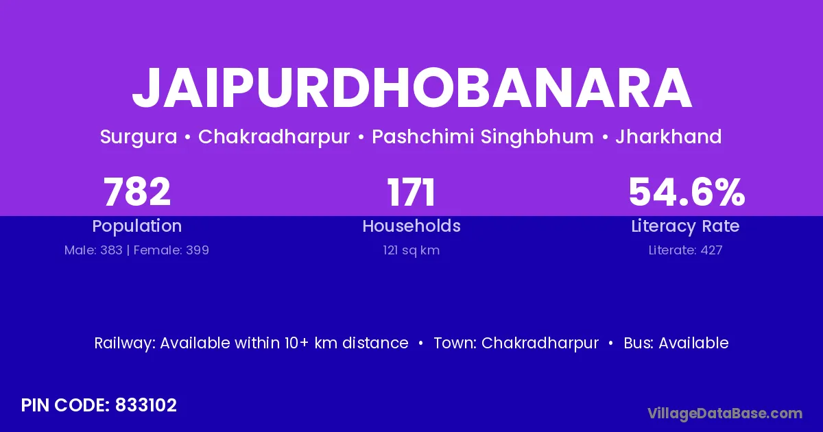 Jaipurdhobanara village is located in the Chakradharpur Subdivision of the Pashchimi Singhbhum district in Jharkhand .