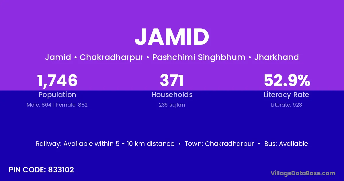 Chakradharpur is the nearest town to Jamid village for major economic activities