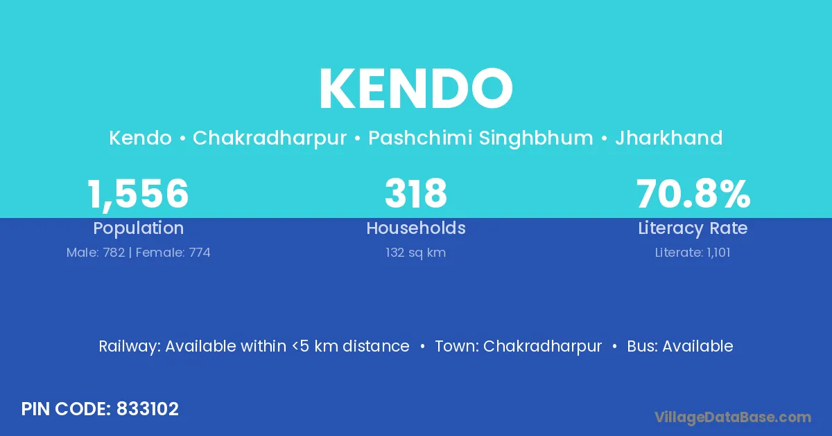 Chakradharpur is the nearest town to Kendo village for major economic activities