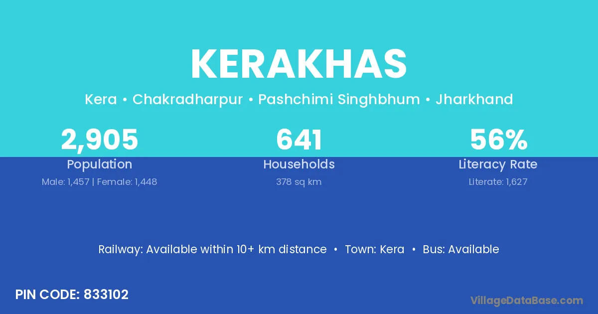According to Census 2011 information, the village code of Kerakhas village is 833102.