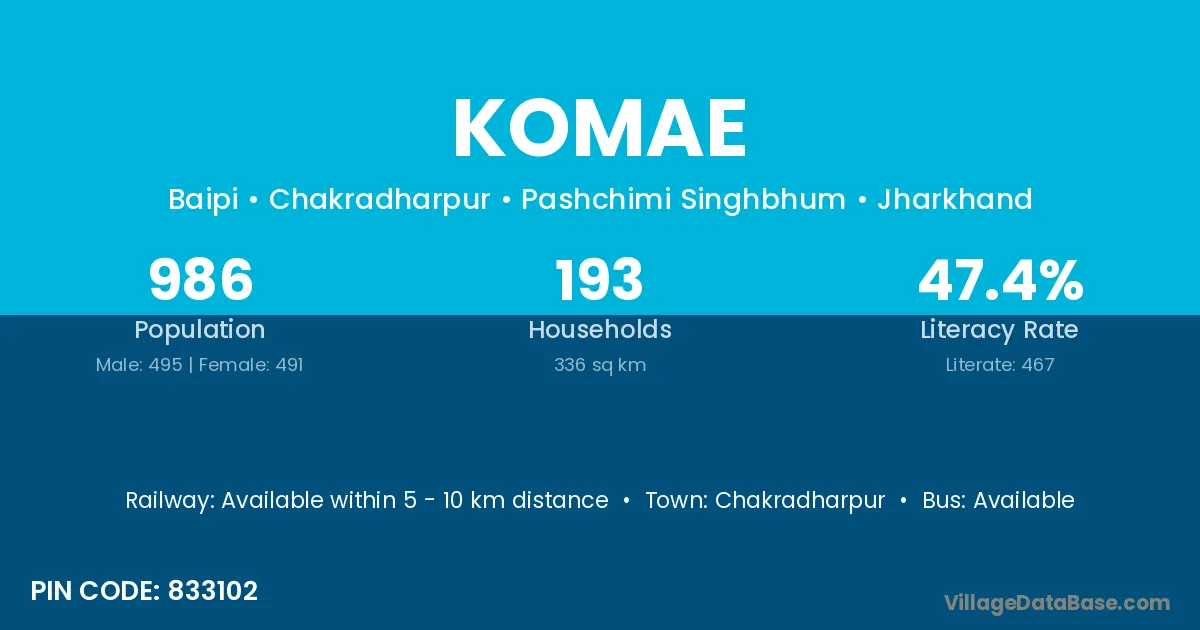Chakradharpur is the nearest town to Komae village for major economic activities