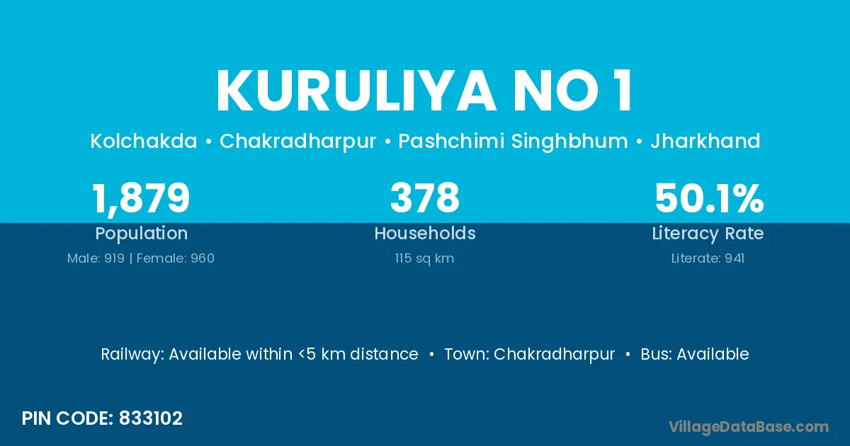Chakradharpur is the nearest town to Kuruliya No 1 village for major economic activities