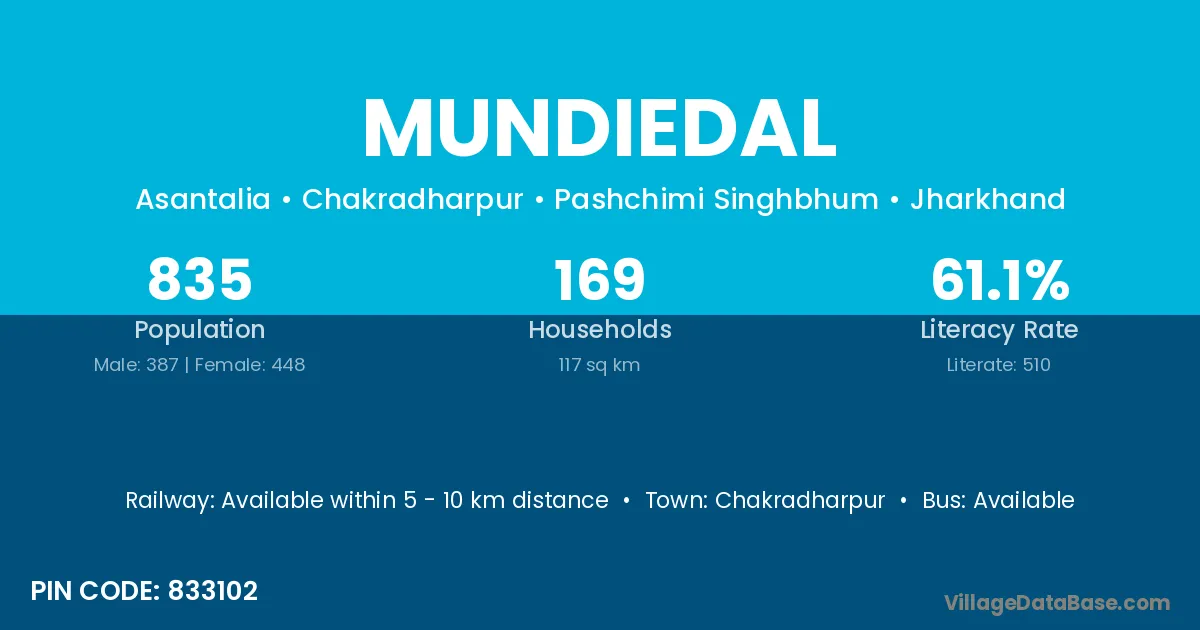 Chakradharpur is the nearest town to Mundiedal village for major economic activities