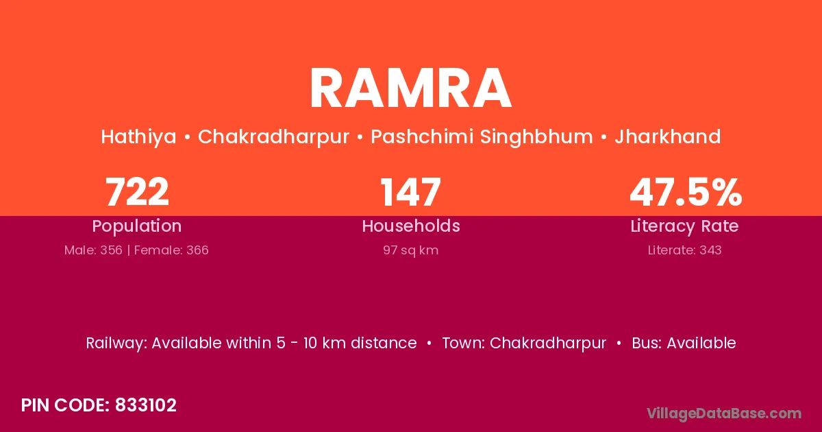 Chakradharpur is the nearest town to Ramra village for major economic activities