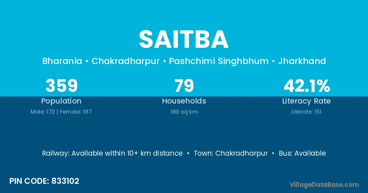 Chakradharpur is the nearest town to Saitba village for major economic activities
