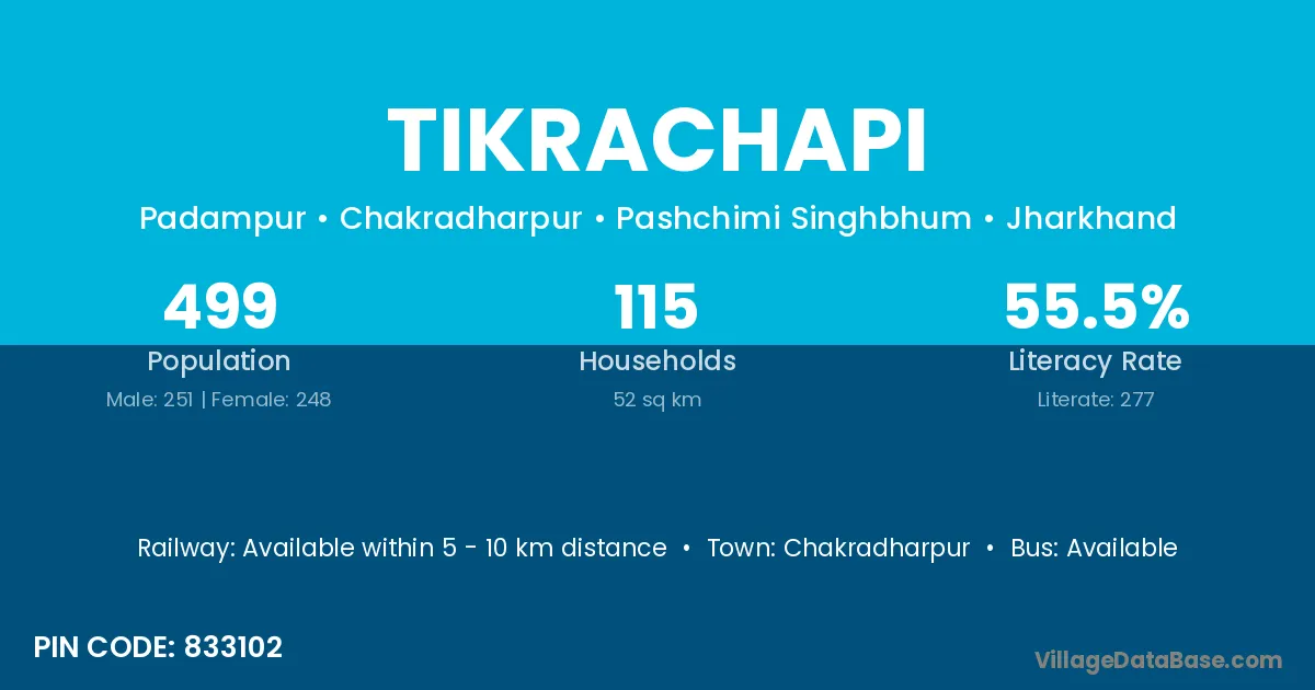 According to Census 2011 information, the village code of Tikrachapi village is 833102.