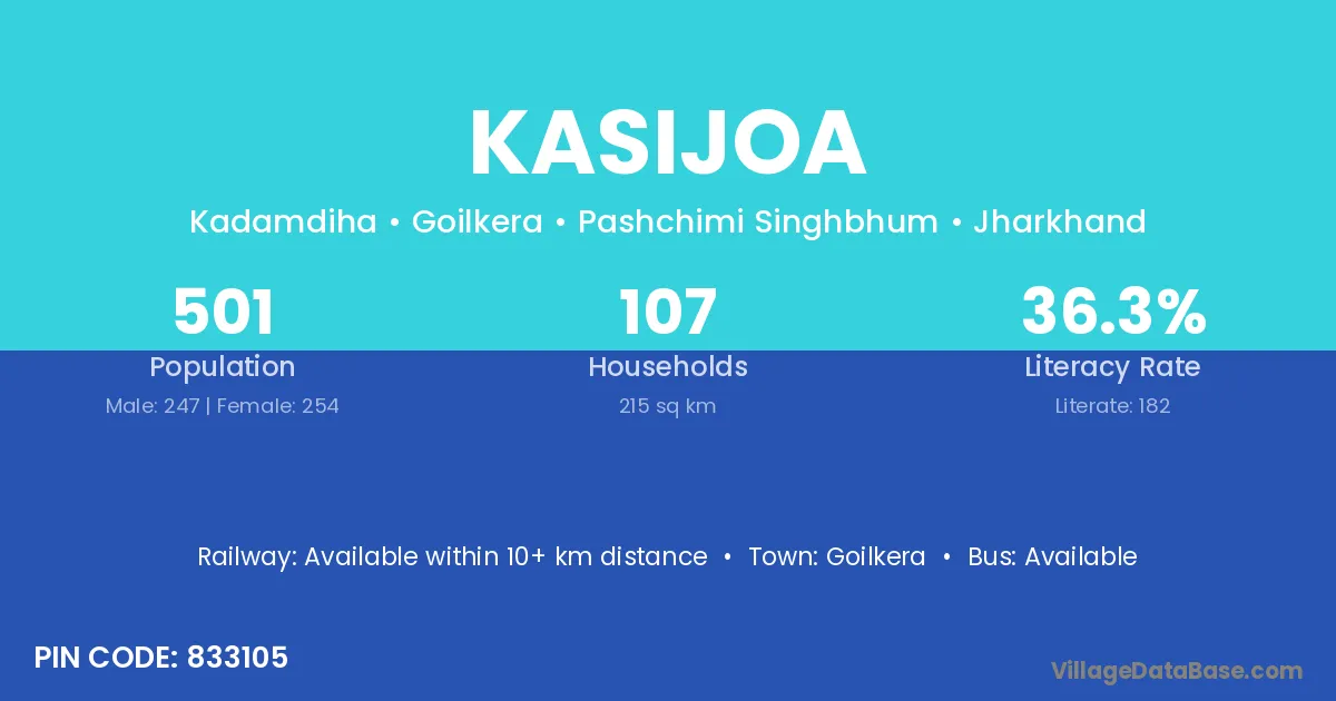 Kasijoa village has a total population of 501 people, of which 247 are males and 254 are females.