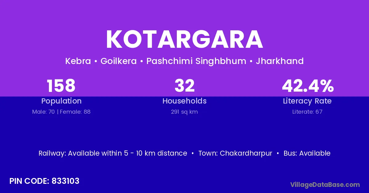 Chakardharpur is the nearest town to Kotargara village for major economic activities