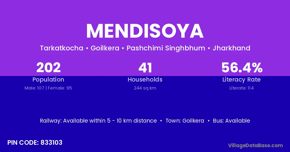 Mendisoya village is located in the Goilkera Subdivision of the Pashchimi Singhbhum district in Jharkhand .