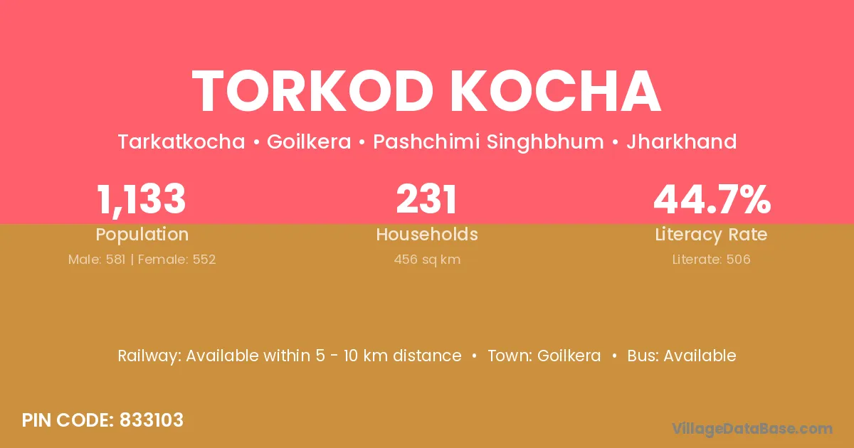 According to Census 2011 information, the village code of Torkod Kocha village is 833103.