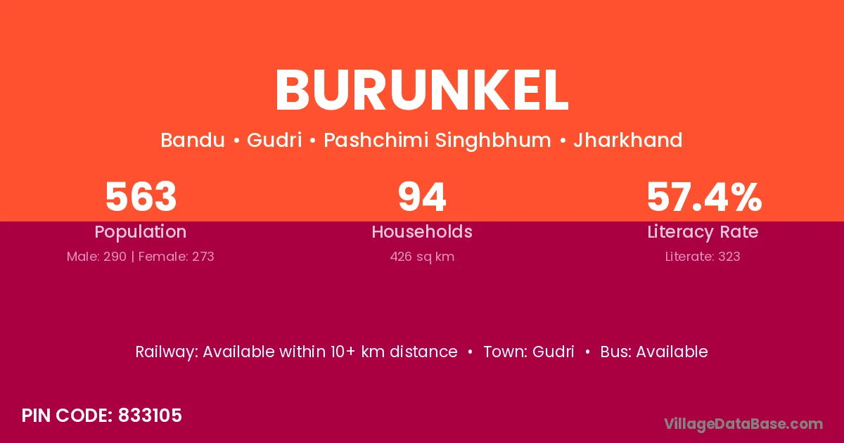 Burunkel village has a total population of 563 people, of which 290 are males and 273 are females.