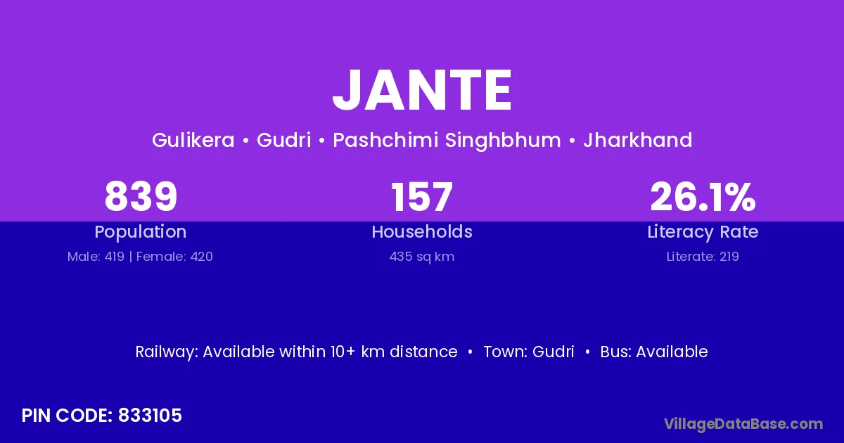 According to Census 2011 information, the village code of Jante village is 833105.