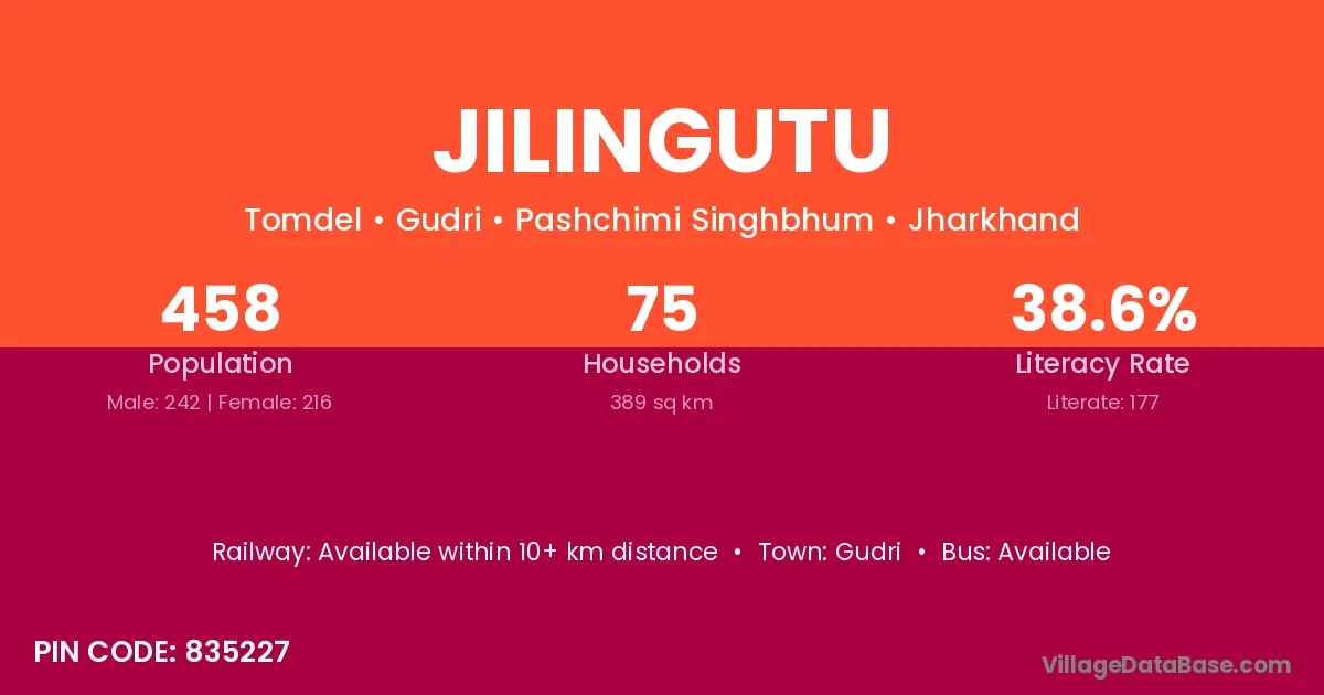 Jilingutu village has a total population of 458 people, of which 242 are males and 216 are females.