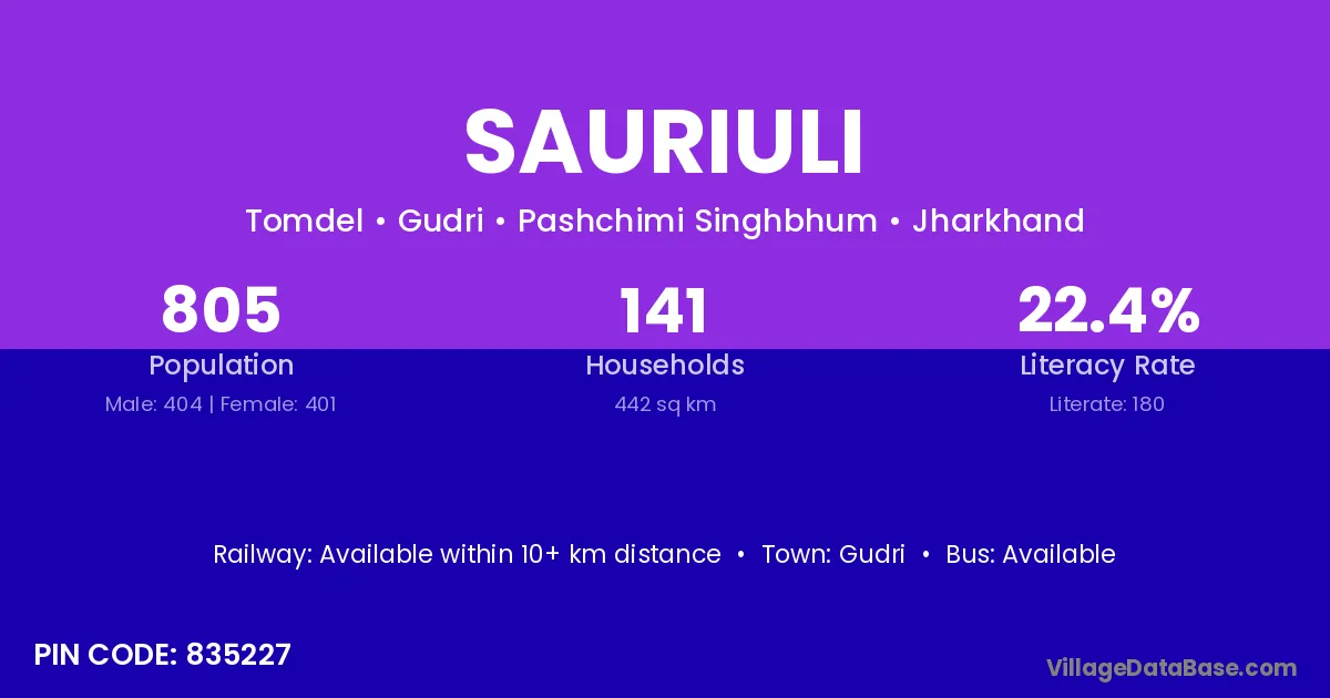 Sauriuli village has a total population of 805 people, of which 404 are males and 401 are females.